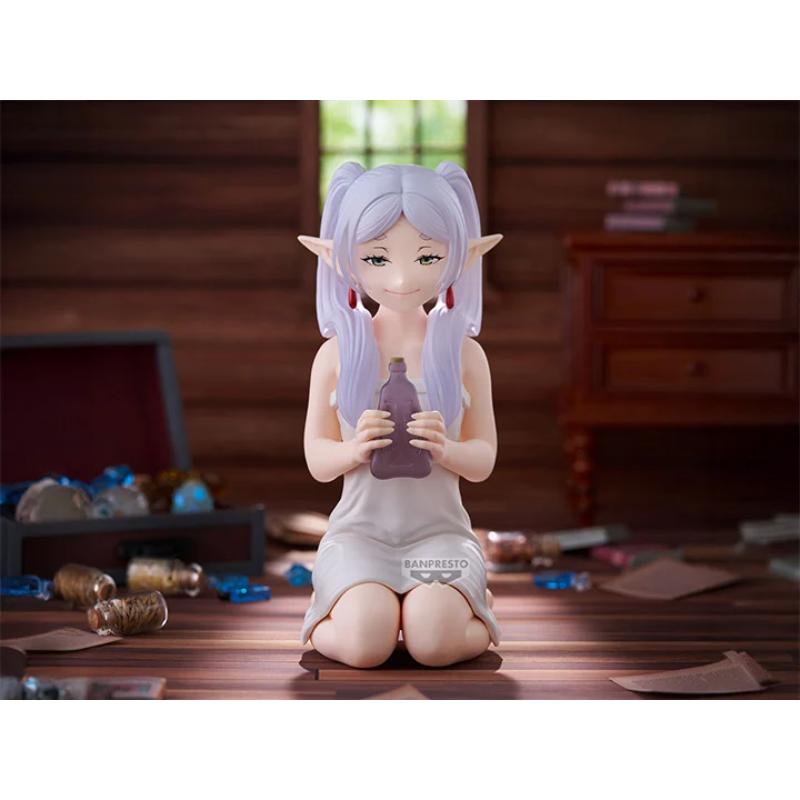De la popular serie de anime Frieren: Beyond Journey's End, llega la figura Relax time Frieren de Banpresto. Esta figura mide aproximadamente 13 cm de alto y muestra a Frieren sentada, relajándose un momento, con una mirada traviesa. ¡No te la pierdas!